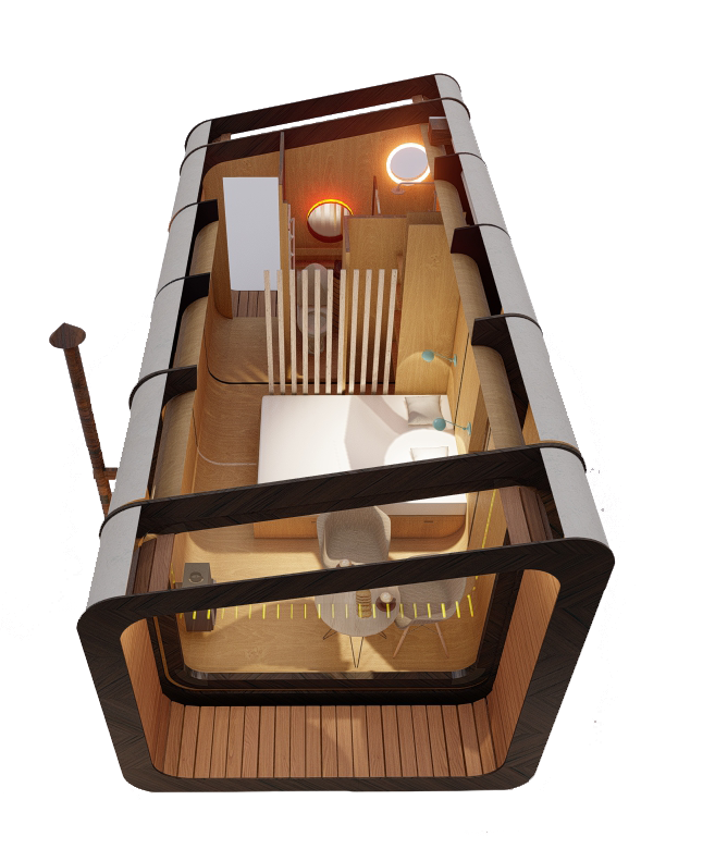 Новый формат отдыха - модульные домики причудливой формы, напоминающей кубики. Концептуальный проект, разработанный архитекторами, для круглогодичного проживания.